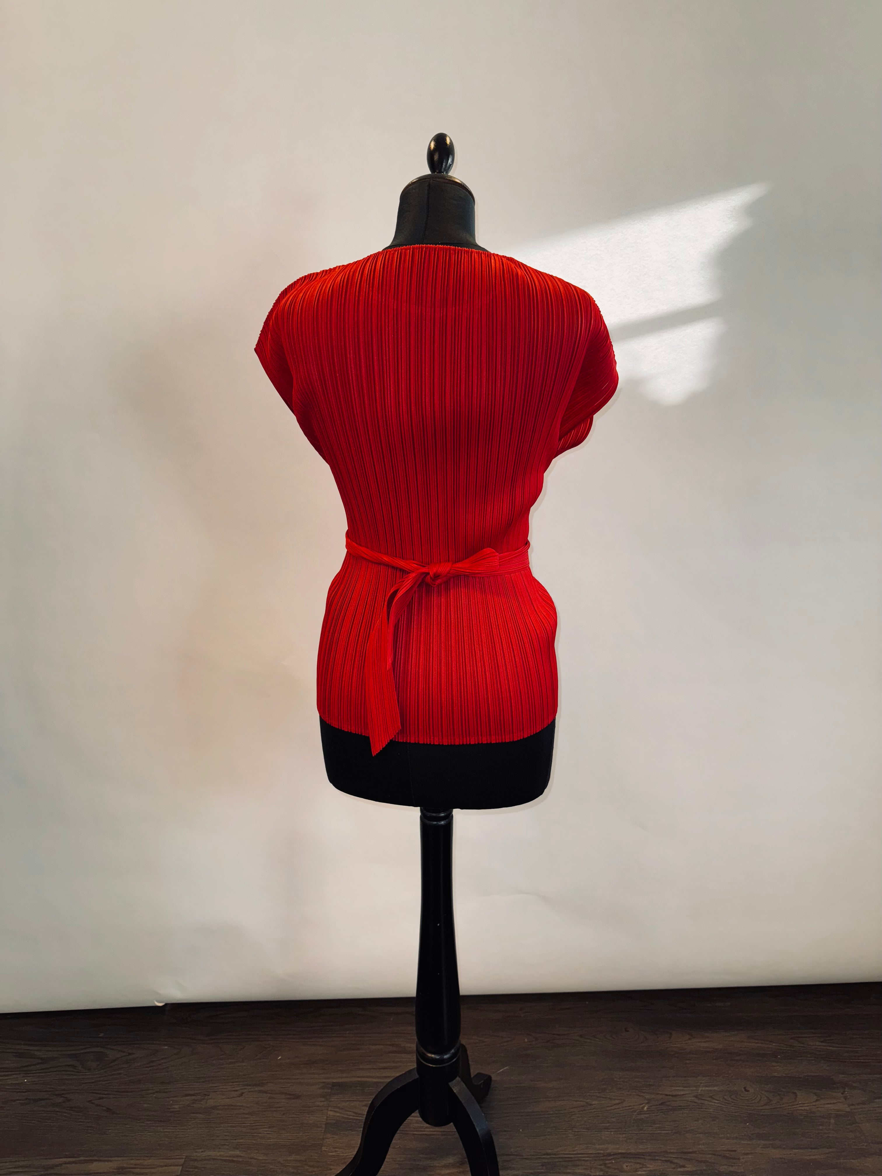 Ce t-shirt plissé à petites manches allie style et praticité avec sa possibilité de serrer et nouer la taille pour une silhouette sublimée. Confortable et léger, il s’adapte parfaitement à toutes les morphologies.